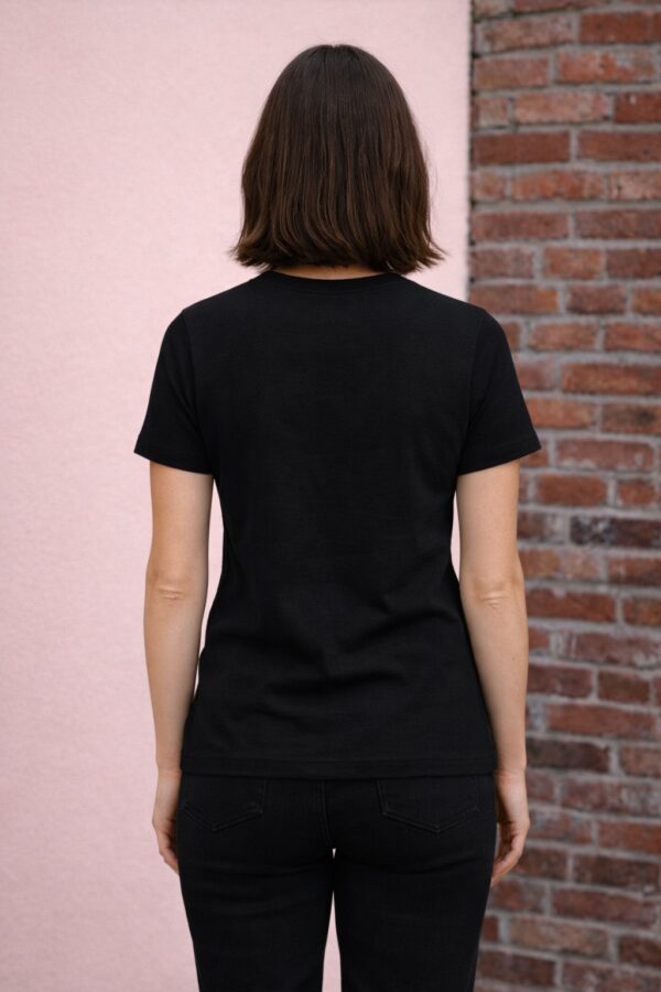 Women’s merino wool T-shirt in elegant black is crafted for effortless comfort and a timeless silhouette.