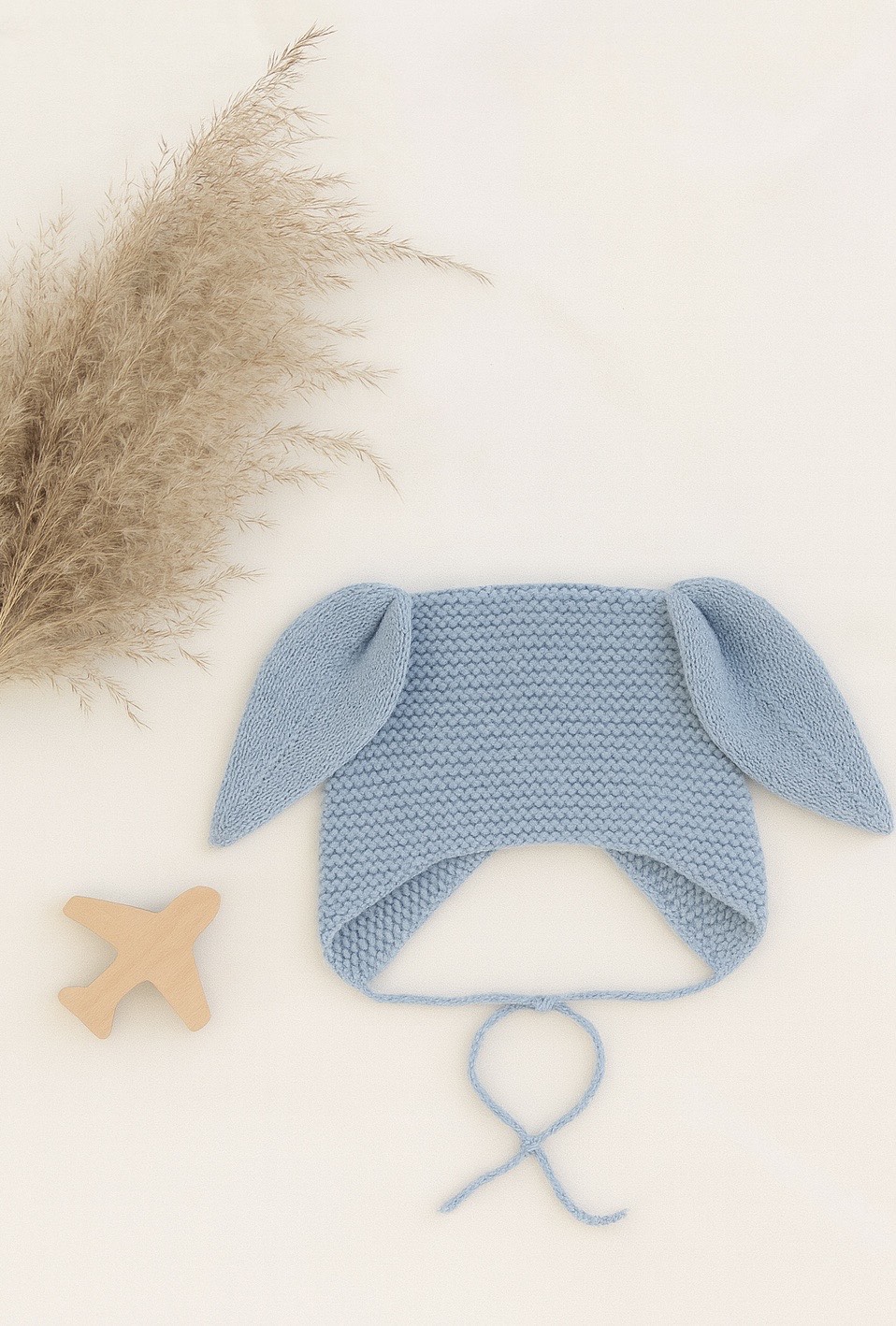 • Long knitted ears with inner fold