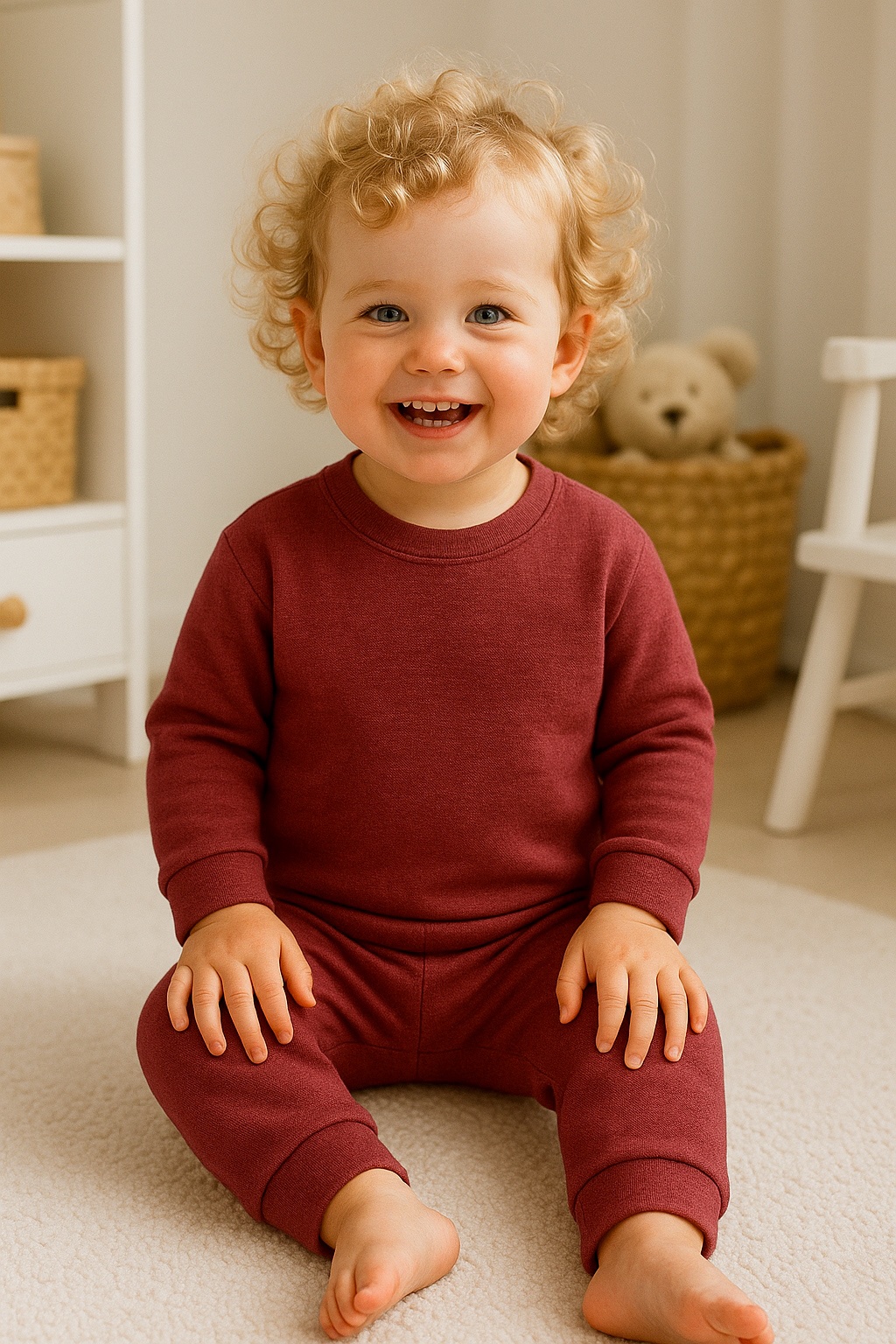 Wrap your child in comfort with the CORELÉ Girls Merino Wool Set – Burgundy, designed for softness, breathability, and natural elegance.