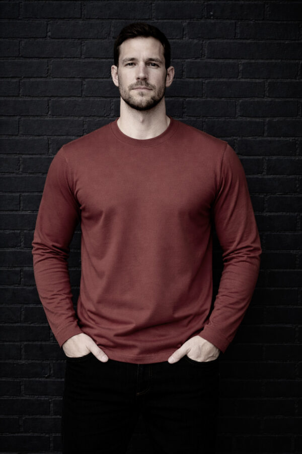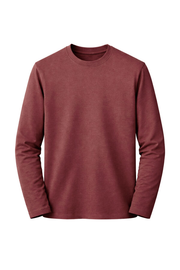 The terracotta color adds a warm, earthy tone that feels refined and modern while remaining easy to style. With a clean silhouette, classic crew neck, and long sleeves, this piece works perfectly on its own or as a premium base layer.