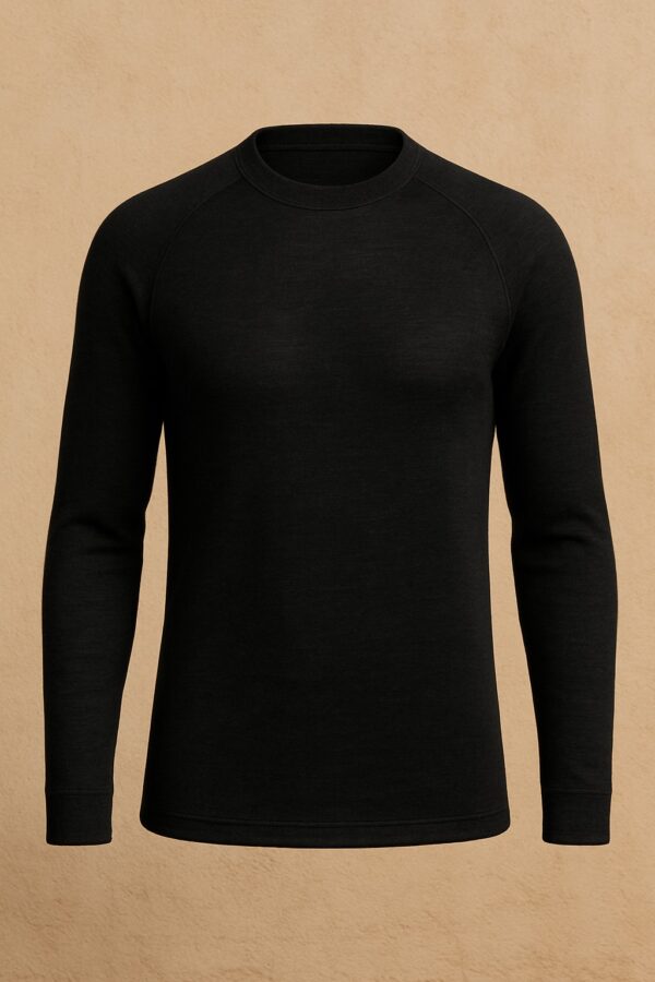 This men’s thermal long sleeve shirt is made from a high-performance merino wool blend (55% merino wool, 45% polyester), designed specifically to function as thermal underwear for cold and changing conditions.
