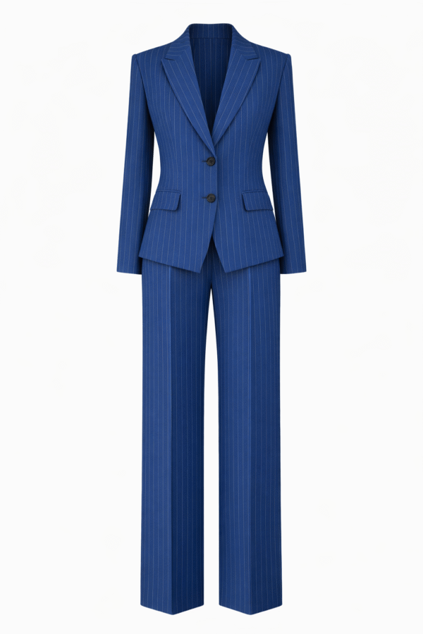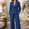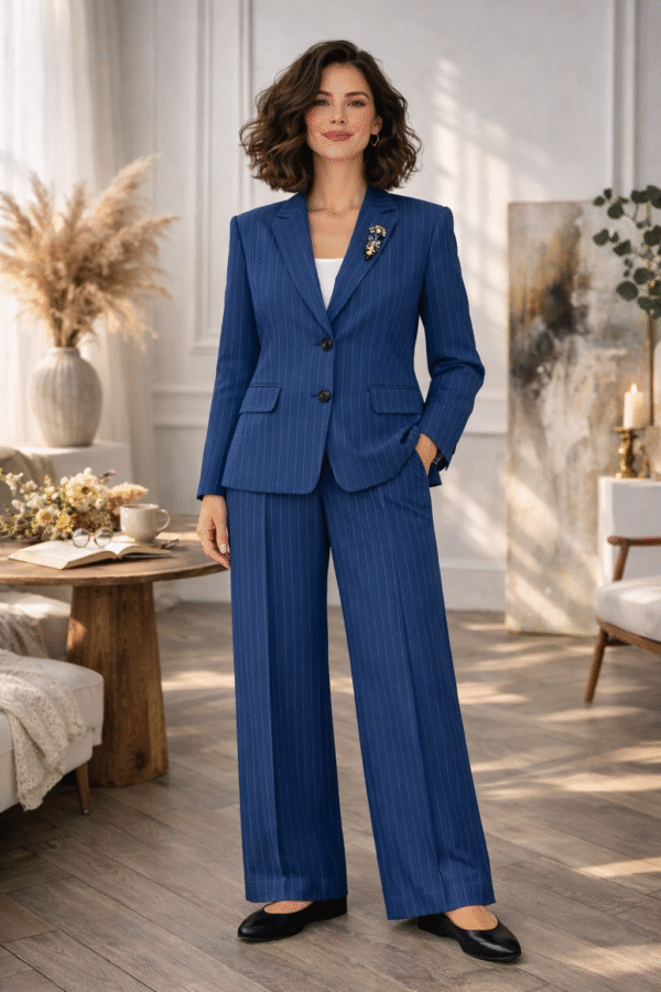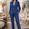 Elegant women’s suit crafted from a high-quality wool blend fabric that combines style, comfort, and practicality. The set includes a structured blazer and matching trousers designed to create a refined and elegant silhouette suitable for professional and formal occasions.